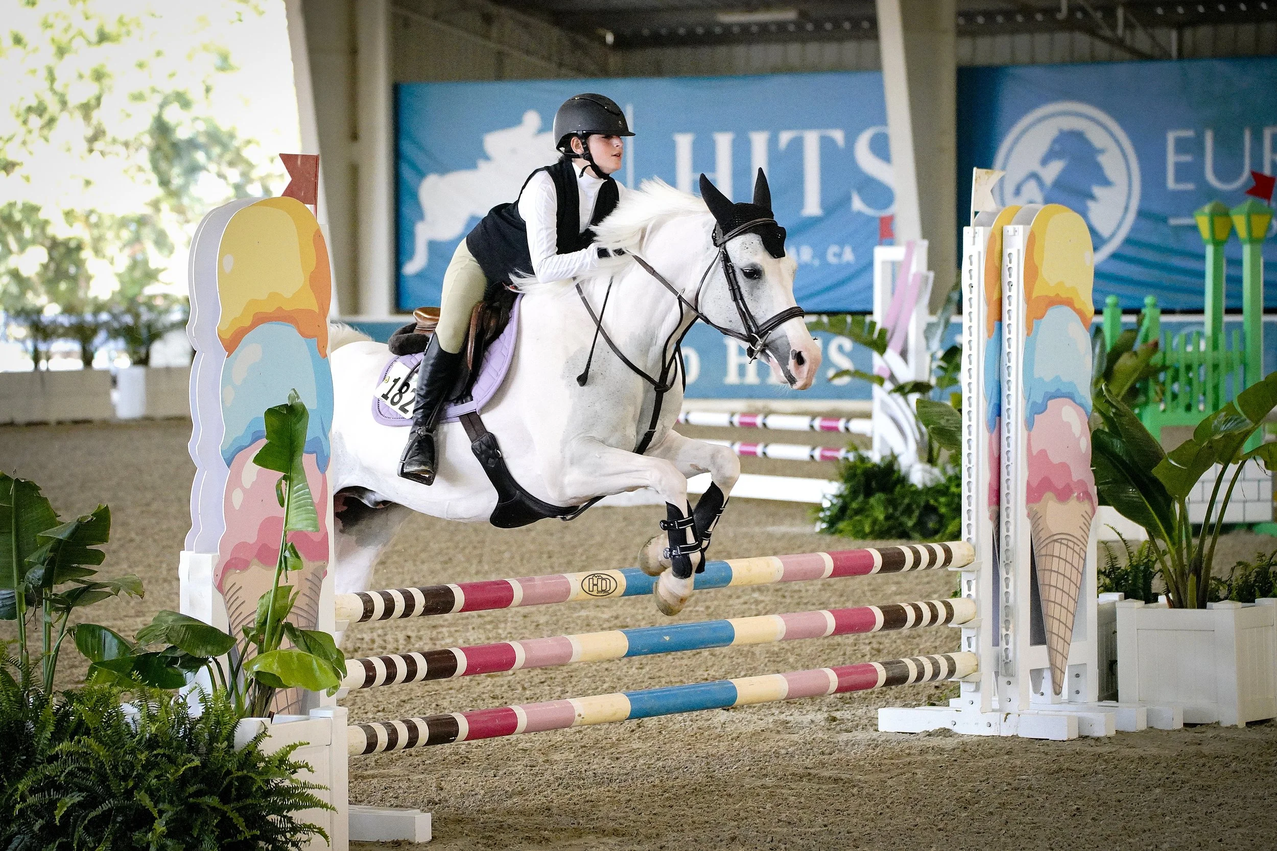 “Vertige” is a pony jumper imported in 2017 sold to Gia Cho in winter 2024. He has experience competing up to 1.10M in France. His adorable good looks, top conformation, and gorgeous movement makes him a great partner for the hunter rings as well.